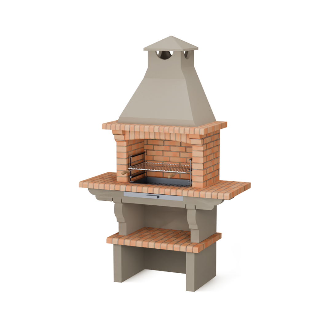 La barbacoa fija de ladrillo AV314F combina a la perfección robustez , diseño rústico y la tradicional parrilla de leña o carbón . Fabricada con ladrillo refractario resistente a altas temperaturas , garantiza un calentamiento rápido y una distribución uniforme del calor, ideal para preparar comidas a la parrilla deliciosas y perfectamente cocinadas.