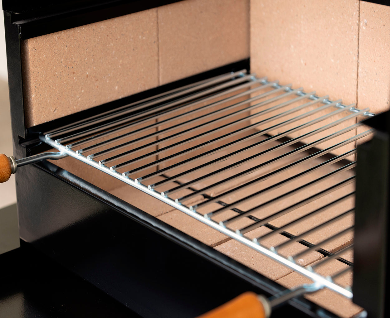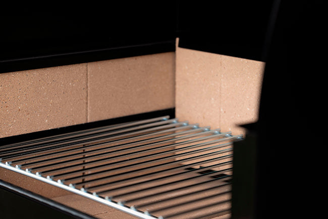 Un brasero independiente y reemplazable, apto para leña o carbón, para un calor controlado y uniforme.