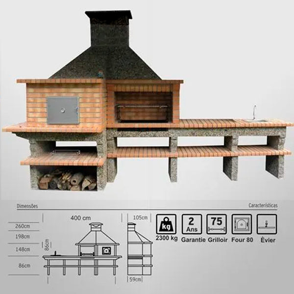 • Barbecue, four à bois, plan de travail et évier intégrés